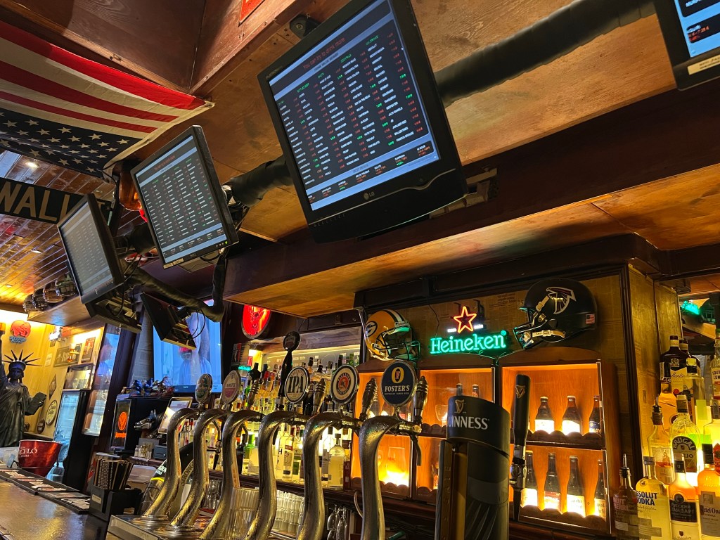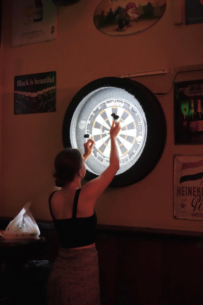 After lunch, we walked to a bar that a friend had recommended to Mallory called Dow Jones. It was a themed American bar based on the stock market. The electronic menus listing all the drink options made it look like you were looking at the stock market. We hung out here for a few hours playing pool and darts.