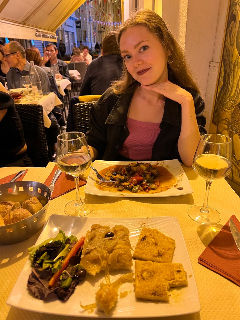 The odds were in our favor, and this restaurant was able to seat and feed us at 12:30am. Not only were we lucky to find seemingly the one and only open restaurant in Nice, but we were also lucky that it was delicious. We had some burrata salads to split as a table and white wine. Most of us got the ricotta ravioli. We couldn’t have been more grateful for a tasty meal, especially all my friends who had had a hectic travel day.