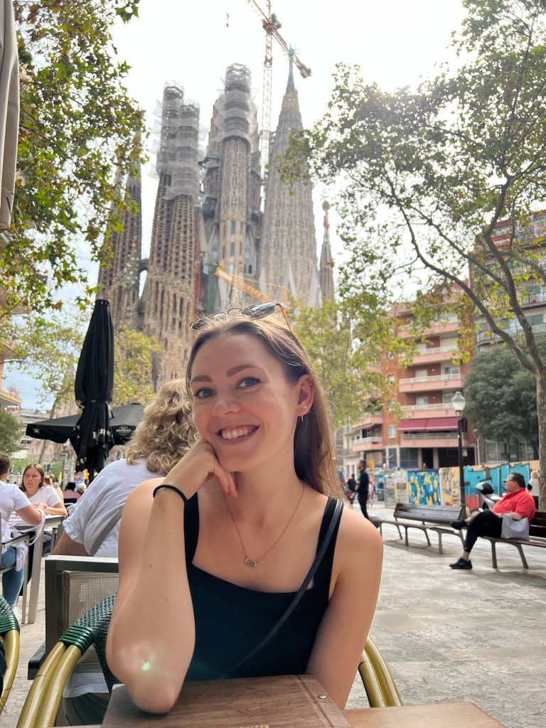 By this point, Carson and Kristina had to go back to the apartment to work, so the 5 of us that were left found somewhere to eat. We got lucky and found a table outdoors that was right in front of La Sagrada Familia, so we had a beautiful view while we ate. We all got sangria and split some tapas. I also got a Margherita pizza.