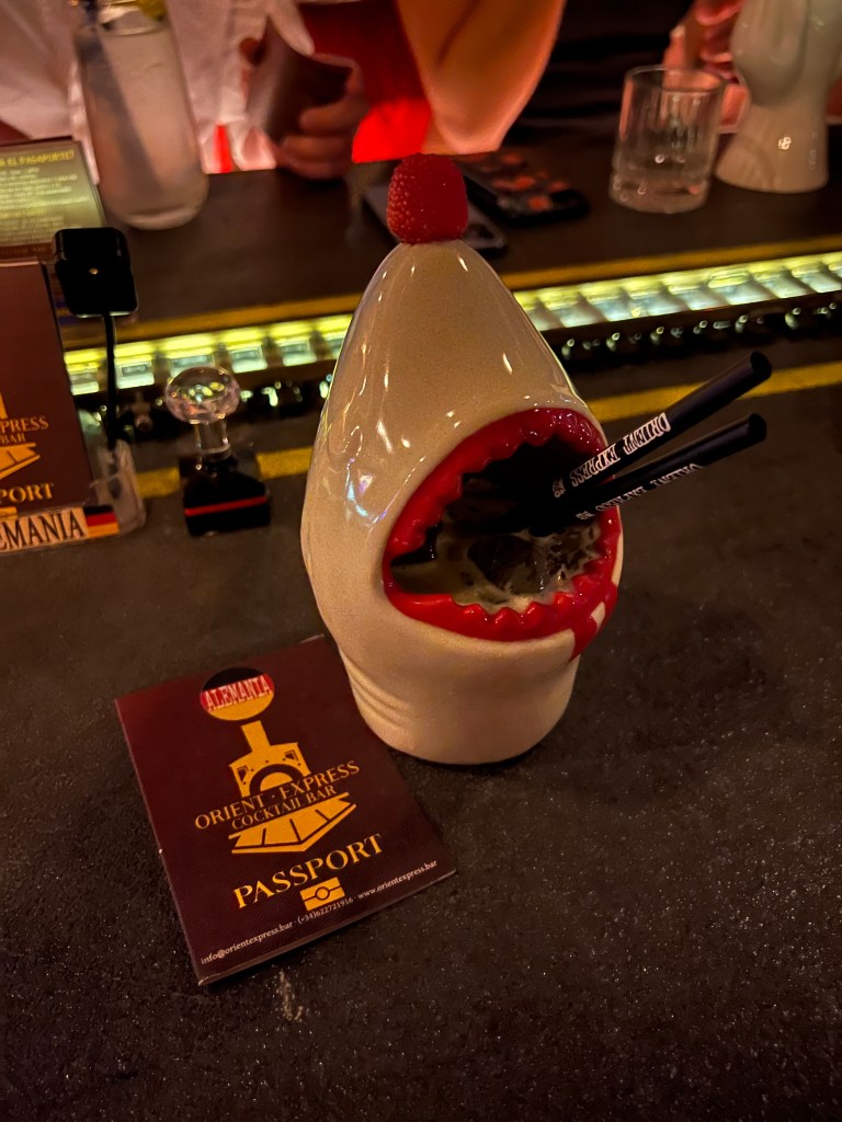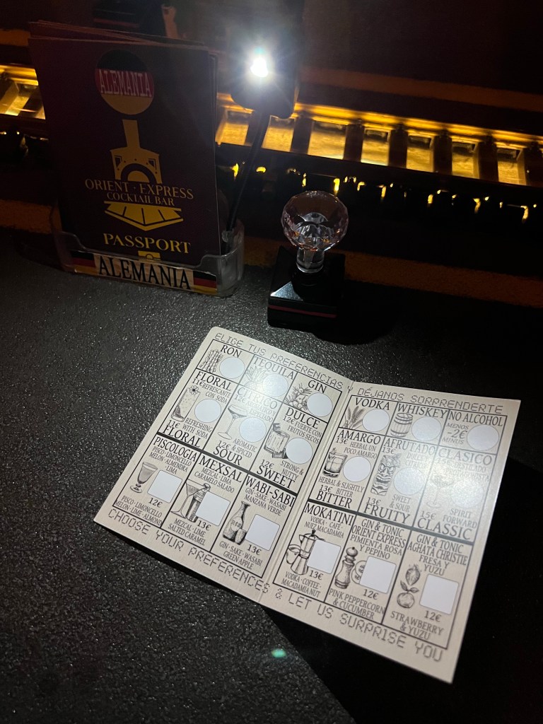 Once we were back in the vicinity of our apartment, we went to a bar around the corner that Mallory and Carson had been to before and loved. The bar is called Orient Express, and it is a cool themed bar based on the Orient Express train. All of the employees are dressed in stereotypical train conductor outfits. At each seat along the bar, there are little “passport” booklets with different countries on them so you know which one is yours. You use a stamp to order your drink on your passport. On the bottom of the passport, you can choose one of the specialty cocktails, or you can use the top two rows to choose your alcohol and flavor and then be surprised. I went with a fruity tequila drink. The “conductors” come around and collect your passports. When your drinks are ready, they are delivered to you on a train that rolls right up to you along with your passport. Most drinks came in a unique glass too. Overall, the whole experience was really fun and the drinks were good too!