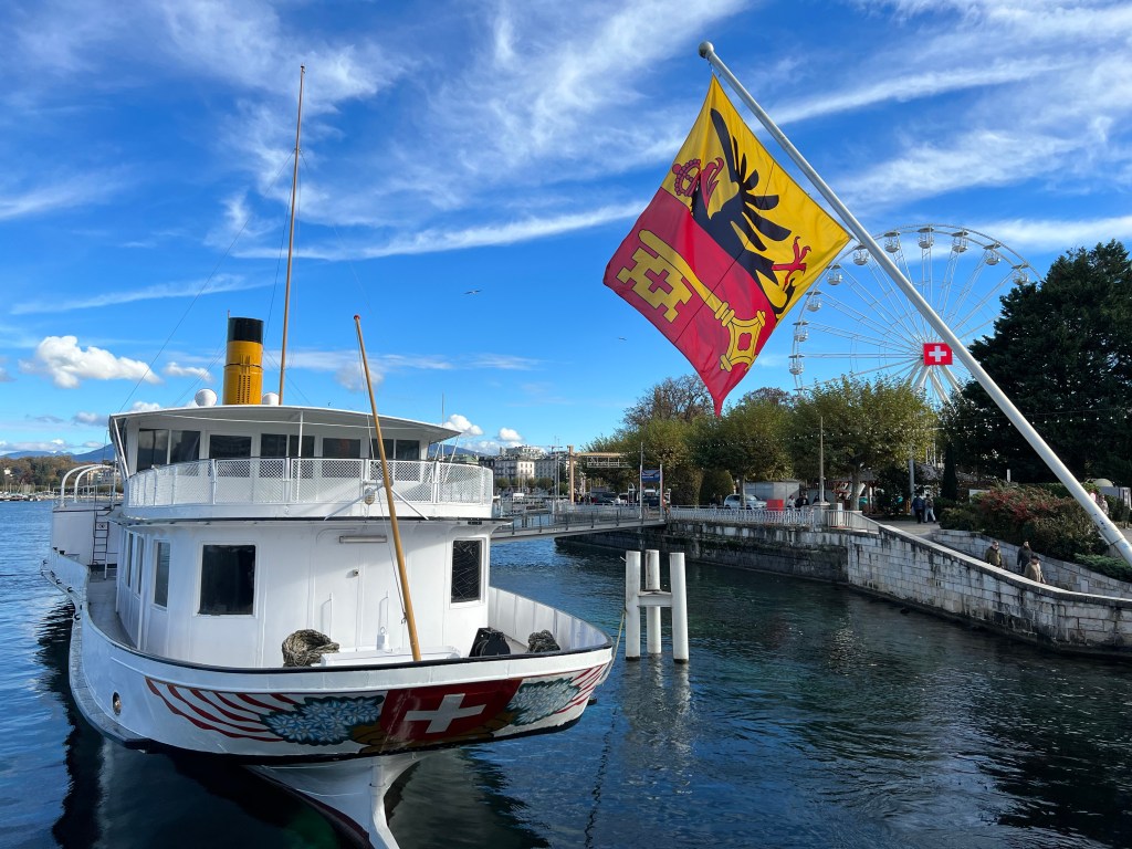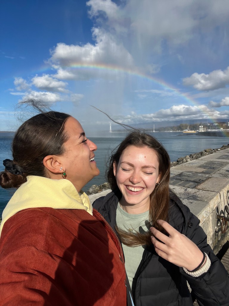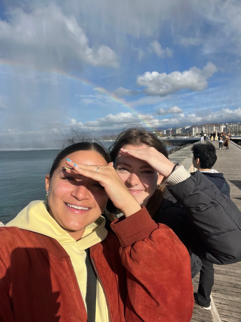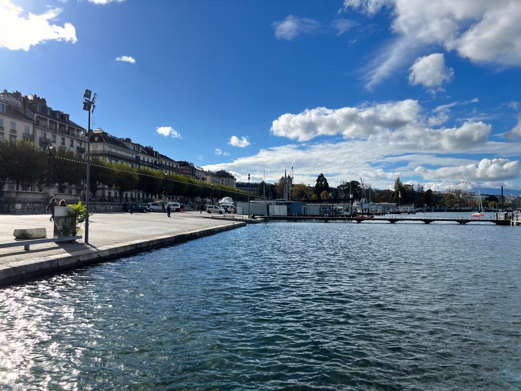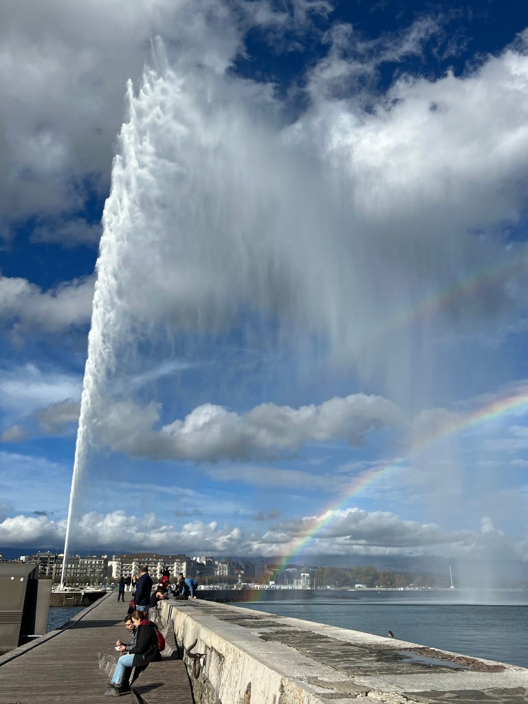 We walked along the Promenade du Lac as the sun came out and admired the beautiful views of the city and mountains in the distance. We spent a good amount of time on the rocky pier watching the Geneva Jet d’Eau, a massive fountain jet shooting straight up out of Lake Geneva. Since the sun was shining, it was creating massive and vibrant rainbows in the fountains streams. It was so beautiful. We spent a long time watching the fountain in awe and taking pictures.