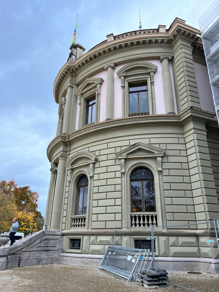This morning, we started our day at the Ariana Museum, which showcases different kinds of ceramic and glass pieces. We got to see a lot of beautiful plates and vases. Our favorite part was the section showcasing glassware. There were standard clear glass cups and vases, but they were also colorful and extravagant pieces of art. The museum building itself was also beautiful.