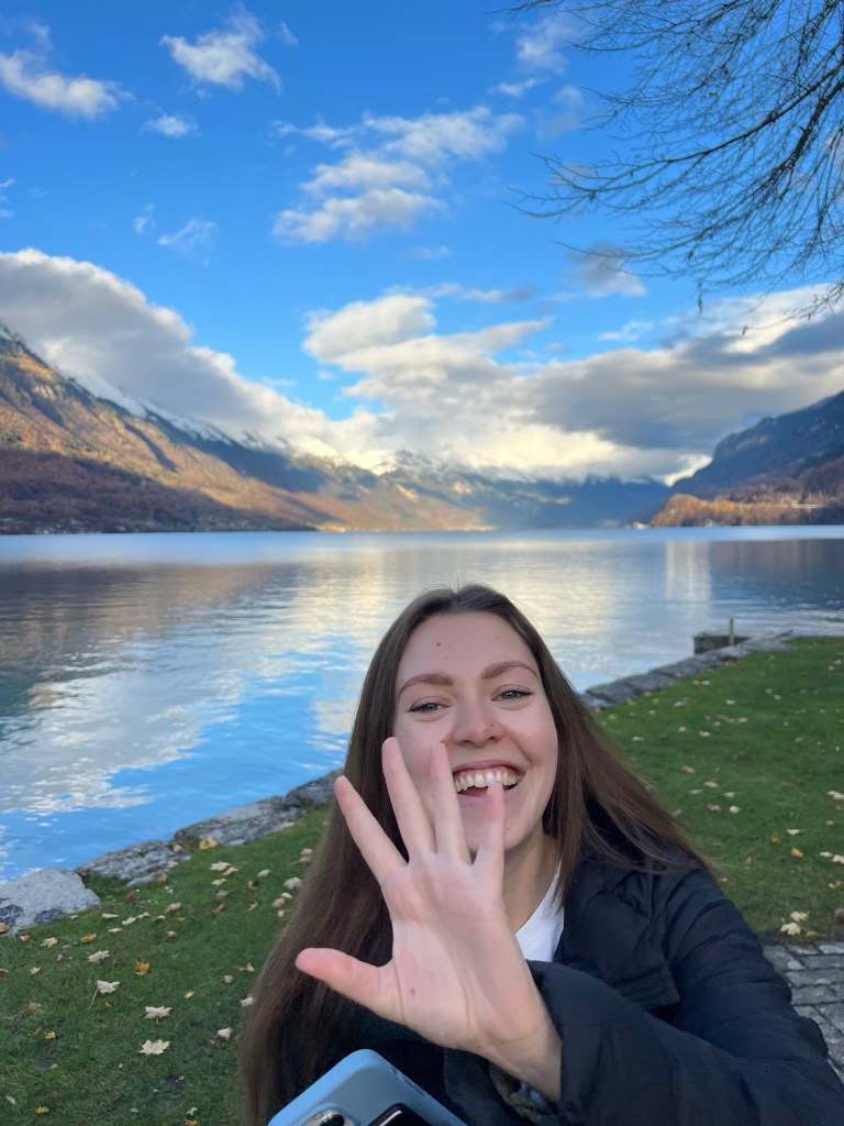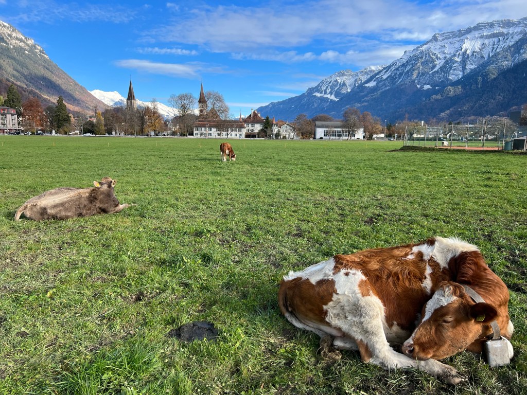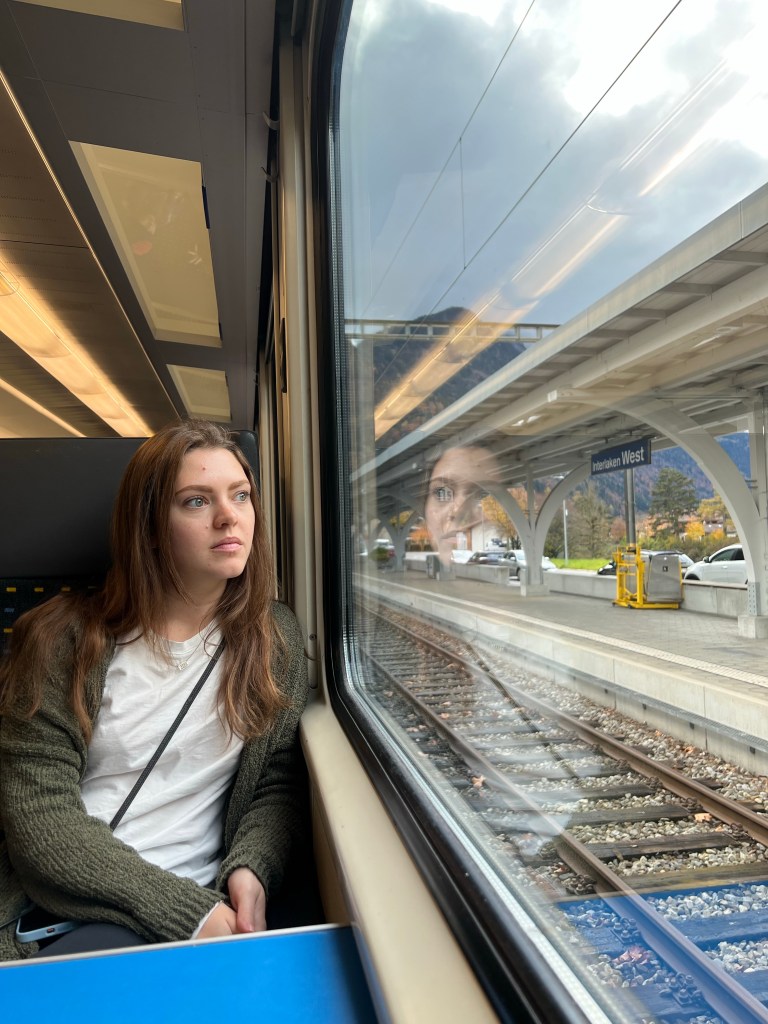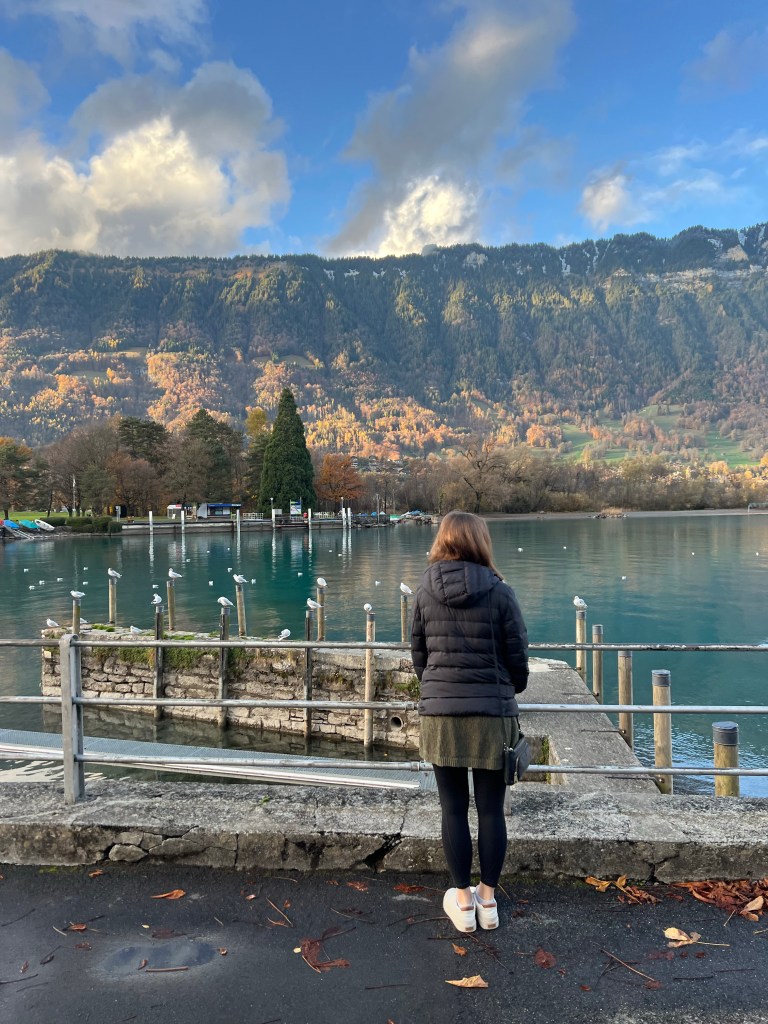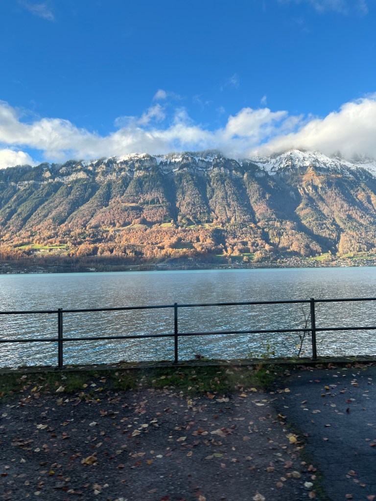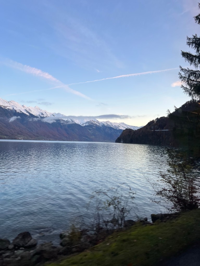 This morning, we left our hostel and took off on our first long distance train ride of our trip. We had gotten an 8-day Swiss Travel Pass, which gave us unlimited access to all the trains, trams, and buses throughout the country. We were headed to Iseltwald, a small town just outside of Interlaken, where we would be staying for the next five nights. While we had enjoyed Geneva, we were both so excited for this leg of the trip because we couldn’t wait to be immersed in all the nature that Switzerland has to offer! We had both been looking forward to spending the train ride reading or journaling, but we both found that we couldn’t take our eyes off the stunning scenery and spent the entire ride with our eyes glued to the window. For the whole ride, we were blessed with views of mountains and lakes and it was just too beautiful to fathom.