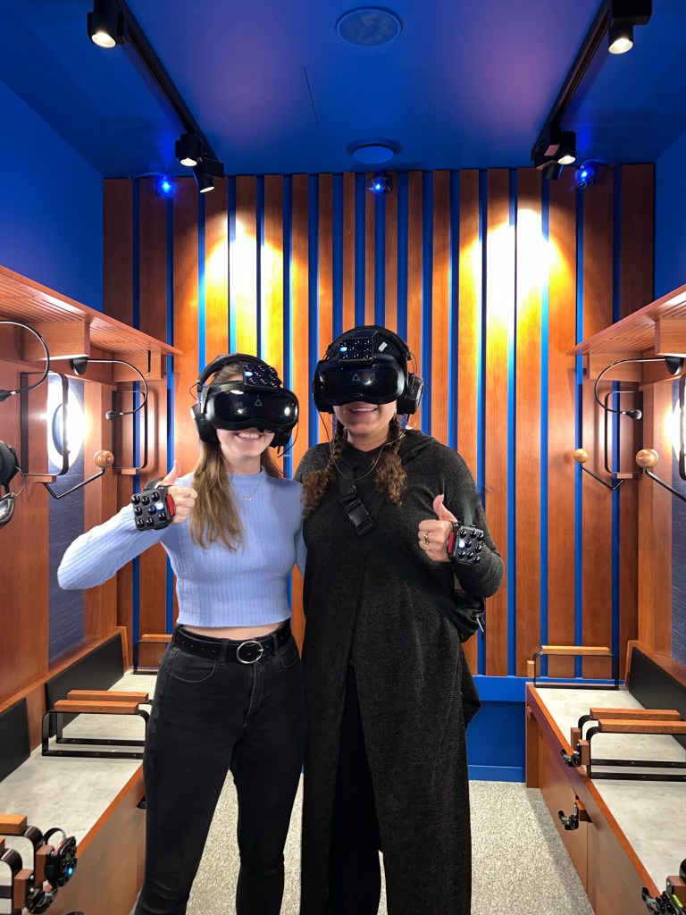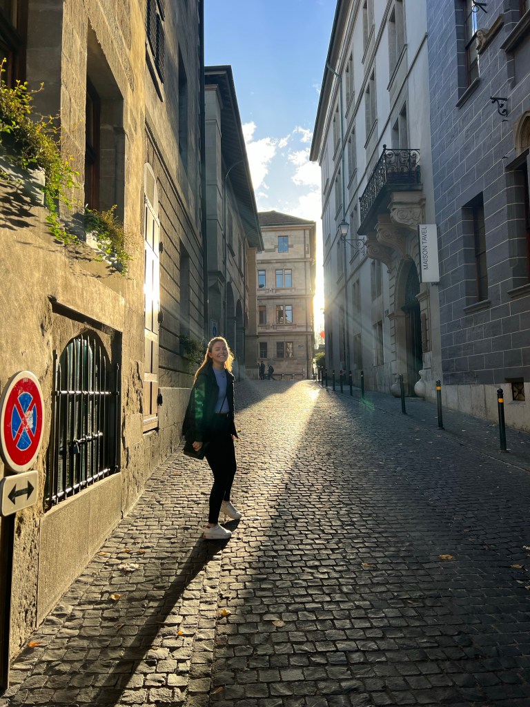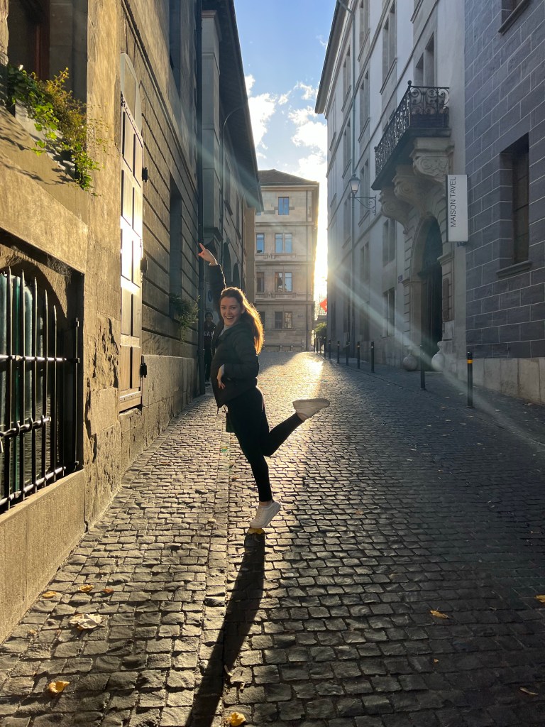 Finally, it was time for our Geneva 1850 virtual reality experience! We made our way back to Dreamscape and checked in for our appointment where we got to choose the avatar that we would play as in the VR. Our characters obviously fit the theme of the experience, so our characters were dressed in typical 1850s fashion. Mallory and I were the only ones who had signed up for our time slot, so it was just us! David, the employee who ran our session, led us into our room where we got all of our equipment on. We had to strap sensors onto our feet and hands. We also wore headsets and headphones. Once we were fully equipped, David turned everything on and suddenly we were transported into a virtual reality! Mal and I could see each other and ourselves, although we were seeing our avatars! This was where we started cracking up because I knew I was looking at Mallory, but what I was seeing was a woman dressed in a traditional colonial outfit. Think pantaloons, ruffled collars, high socks, low pony tails. We looked hilarious. We could also look around and see ourselves. It’s really crazy! We stood up and walked into the VR room where Mal picked up a prop key, and I picked up a prop invitation. We got into a horse drawn carriage where we could look out the windows at the scenery around us. Our carriage sped away and dropped us off at a building where we eavesdropped on three men discussing how citizens were planning to rise up and revolt. A secret door opened behind us as another man offered us a way out of the building before we were spotted. This, of course, is all fake, but it felt so real! In reality, we were just walking around a black room, but through our eyes, we were walking through secret tunnels and riding on a carriage through Geneva. We even recognized some familiar locations that we had seen in the city like the Cathedral. The story ended with the citizens of Geneva starting a riot with explosions and fighting. Luckily, a woman offered us an escape route on her hot air balloon. We floated away from the chaos and watched Geneva from above as the city transformed over time. It was such a crazy experience, and it’s hard to describe it! We had so much fun though. I’ll link the Dreamscape trailer for the experience we did to try and show what it was like.