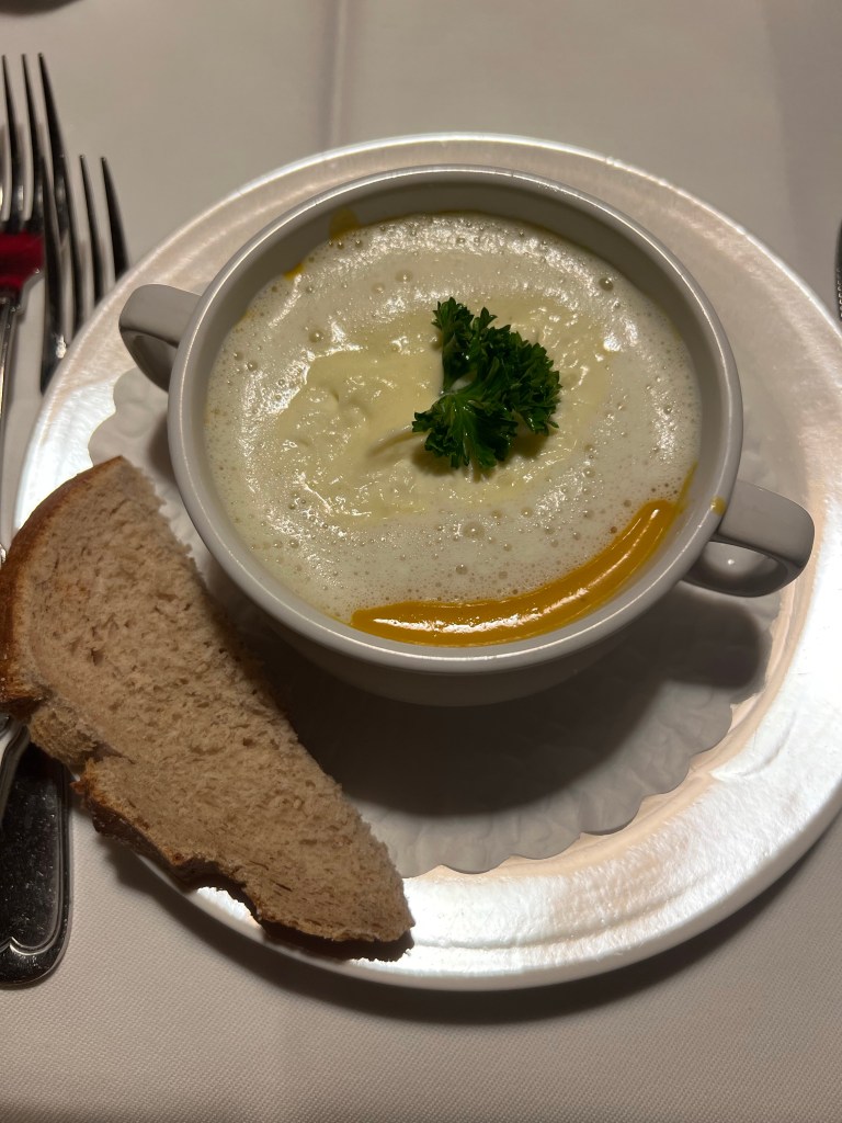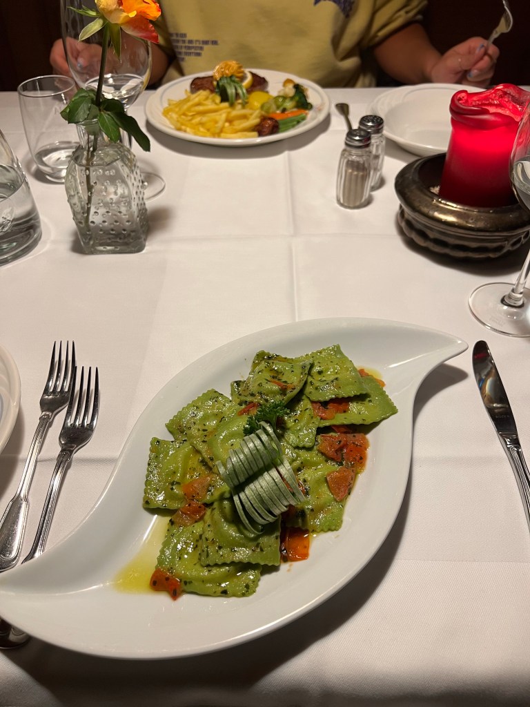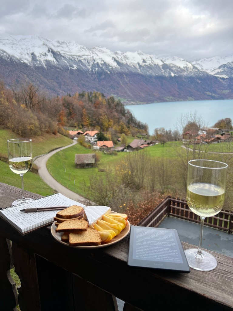 We decided to chill at the Airbnb for a bit before heading out for dinner. I read my book for a little bit and a took a quick nap. Around 6:30 pm, we took the bus to the edge of Iseltwald to get dinner at a hotel restaurant along the lake. We both got the creamy vegetable soup, which was amazing. (We have had so many delicious soups here in Switzerland) I got a basil and tomato ravioli and some sorbet for dessert. We also both had a glass of Swiss Sauvignon Blanc. It was a 10/10 meal. We took the last bus of the night back to the Airbnb and binge watched Survivor before calling it a night.