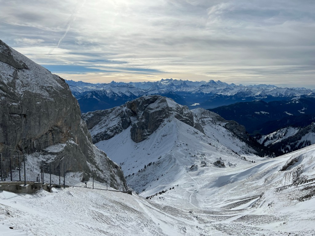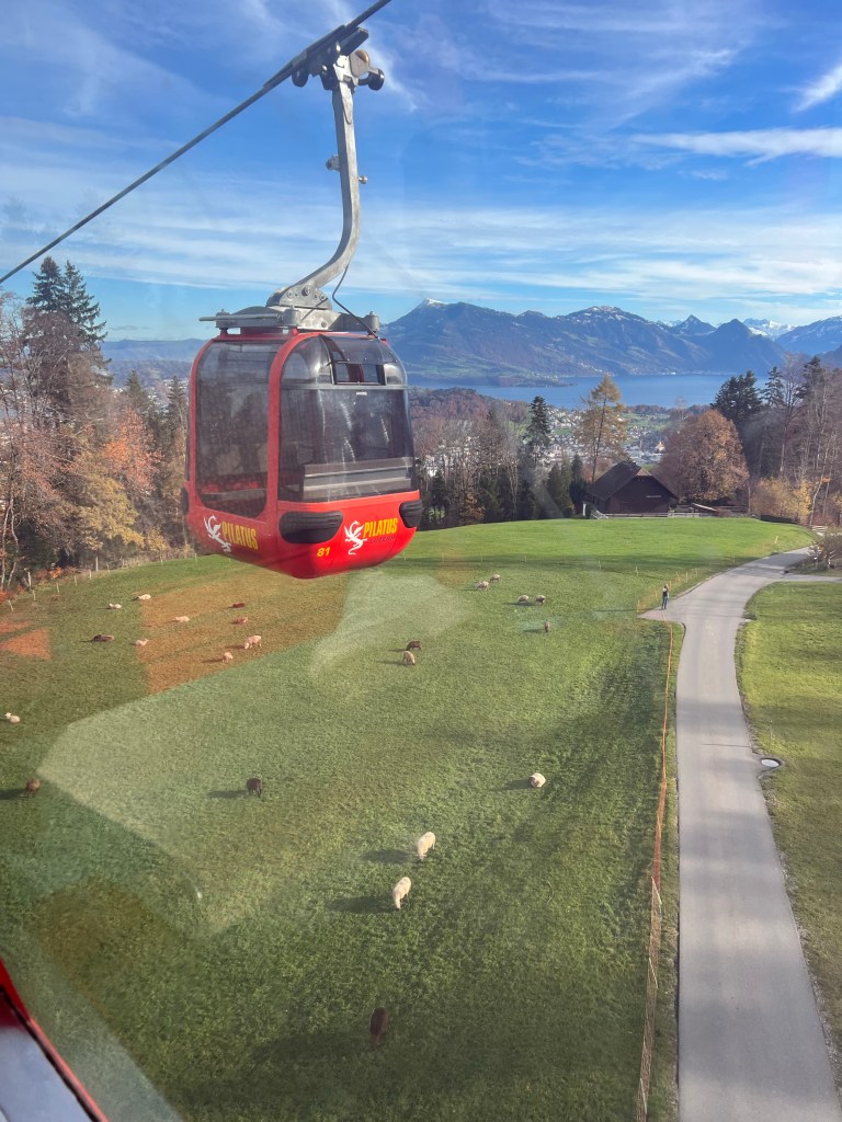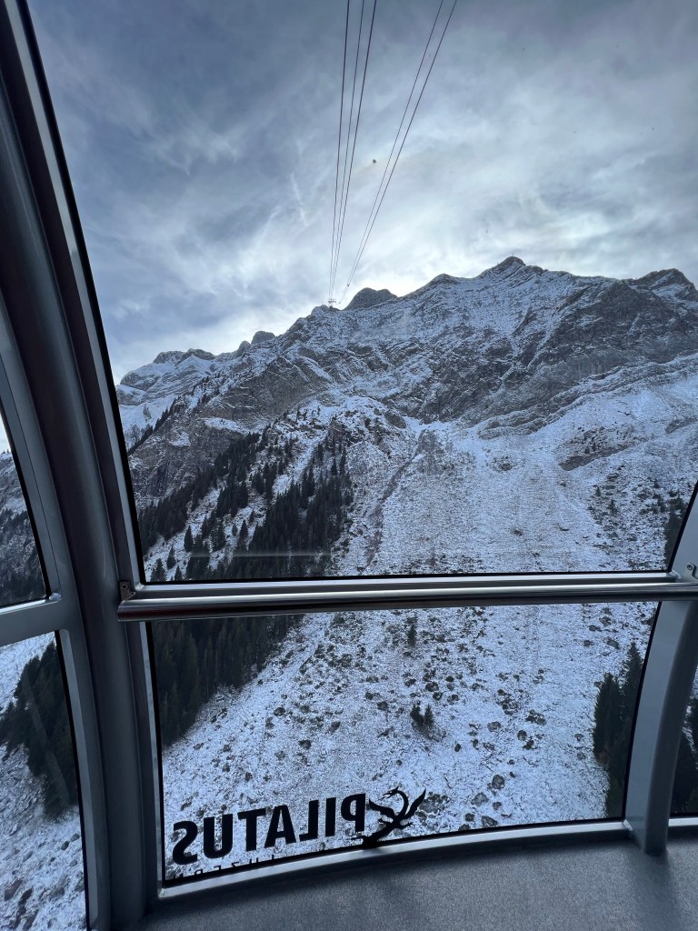 When we got to Lucern, we went straight to the cable car and rode up to the top of Mt. Pilatus. It took about 35 minutes in the cable car to get all the way up there. It was a snowy heaven up there! Down below, Lucerne was still green and lush. Up on Mt. Pilatus, it was freezing and windy and covered in snow. We were surprised to learn that there are two hotels at the top of Mt. Pilatus. We hung out up there with hot chocolates for a while and enjoyed the view before taking the cable car back down.