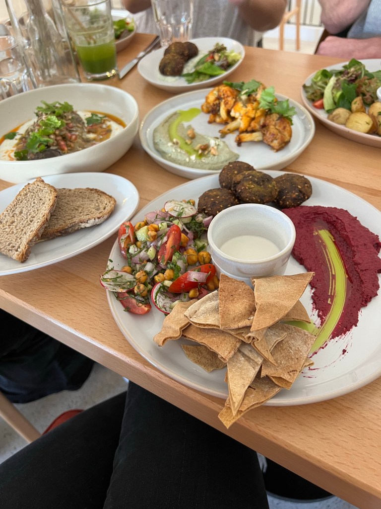 We slept in this morning and hung out at the Airbnb until lunchtime when we met up with Mallory, her mom, and our friend Martin who had taken the ferry to Tangier from Spain the night before. Our lunch was amazing. I got a pea and mint soup, a falafel plate, and shared a grilled aubergine with Mallory. It was all so delicious.